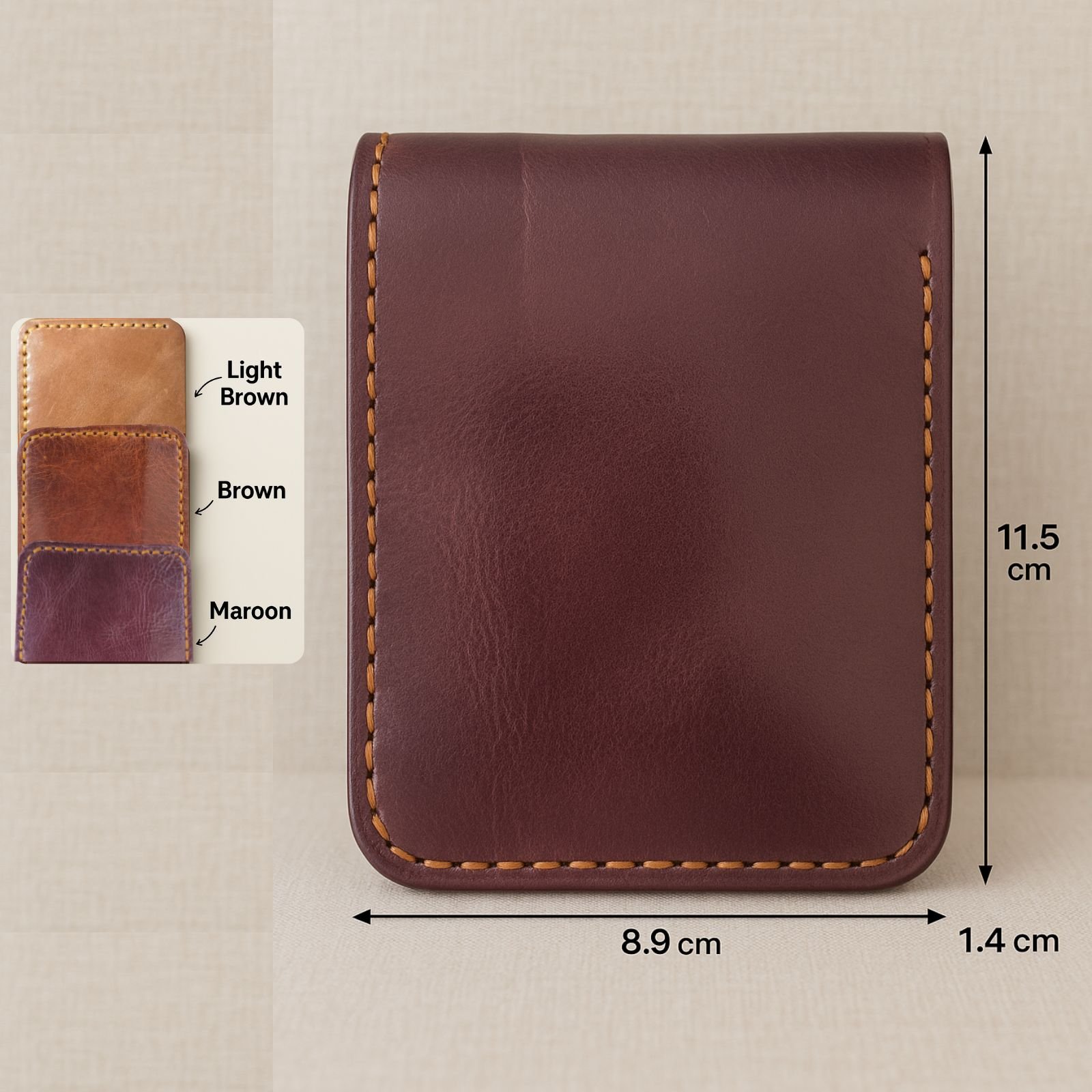 At WeCraft, we believe your everyday carry should feel as good as it looks. Our Premium Soft Leather Dollar Size Wallet is handcrafted from the finest buttery-soft leather, offering unparalleled comfort that only improves with time. Unlike stiff, mass-produced wallets, this genuine leather wallet molds to your touch, becoming more supple with each use.